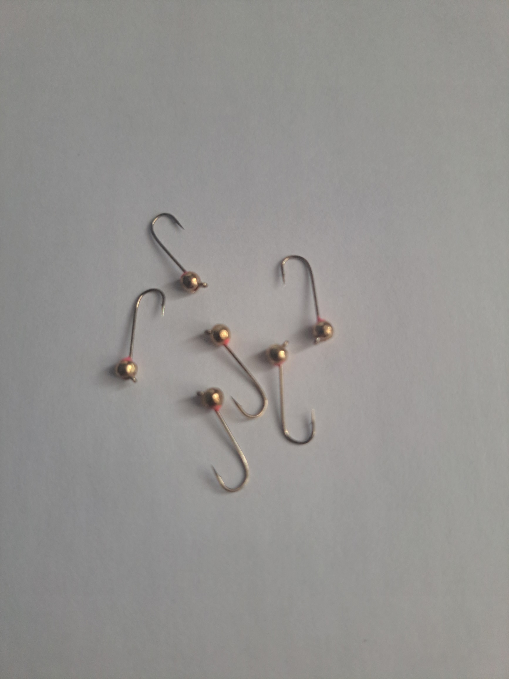 pitkällä koukulla varustettu tapsimorri. väri kulta ja 3mm pallo. koukku 14